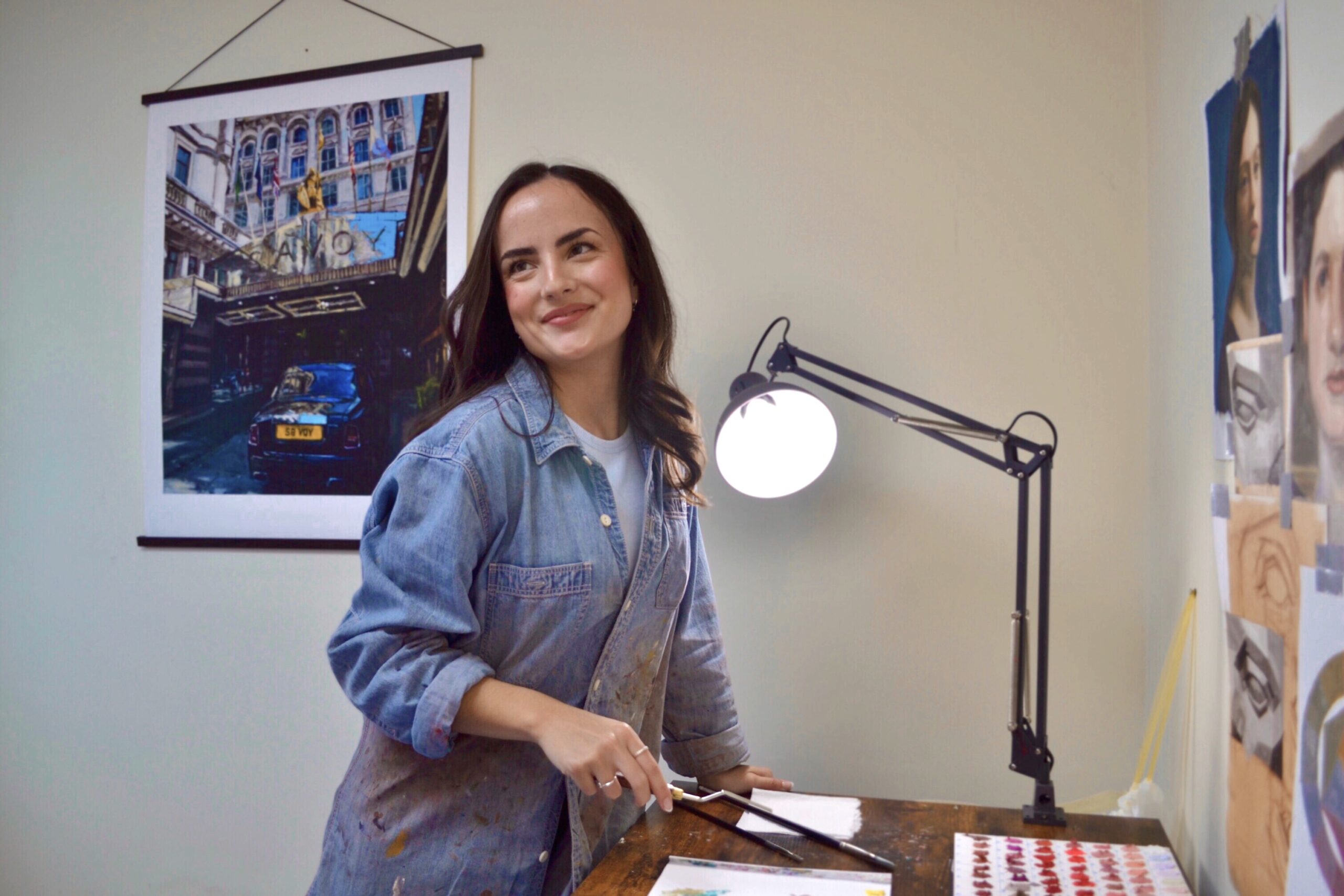 Her work has been featured on BBC News, ITV Wales’ Backstage, and Sky Arts’ Portrait Artist of the Week. She has been recognised by the Portrait Society of America, was chosen by The National Gallery as one of their ‘200 Creators’, and has exhibited on a digital billboard in Times Square, New York. Her paintings have also been shared by institutions including The Savoy, Claridge’s and Cunard.